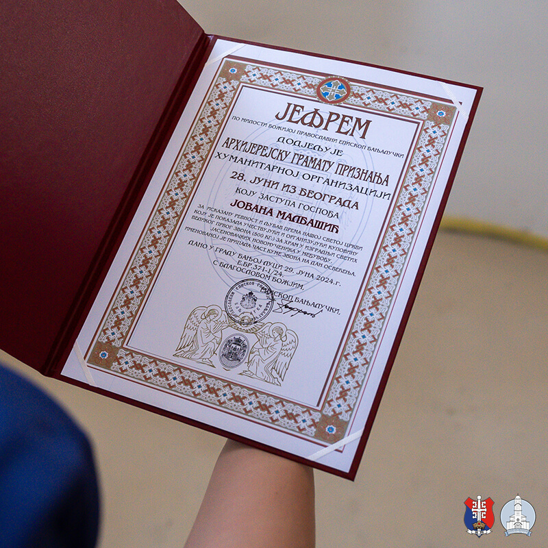 Ganuti što učestvujemo u izgradnji nečega što je mnogo veće od svih nas, želeli bismo da izrazimo duboku zahvalnost Njegovom Preosveštenstvu g. Jefremu, Episkopu Banjalučkom, na dodeljenoj Arhijerejskoj gramati našoj organizaciji i našem predstavniku.